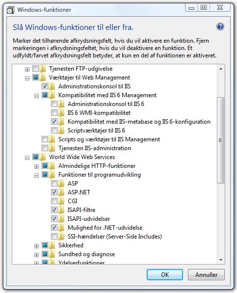Installation af IIS og ASP.NET på Windows Vista